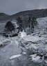 A gap in the clouds illuminated an isolated white painted farmhouse along the Llanberis pass.